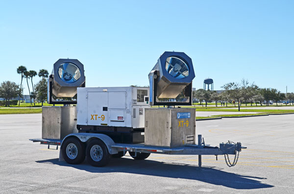 The military specification is 1.2 billion candlepower at 20kW, 800 million candlepower at 15kW, 600 million candlepower at 10kW. Our mirrors are pitted from 45 years of being outside in the salt air at Cape Canaveral, so we’re losing a bit.
